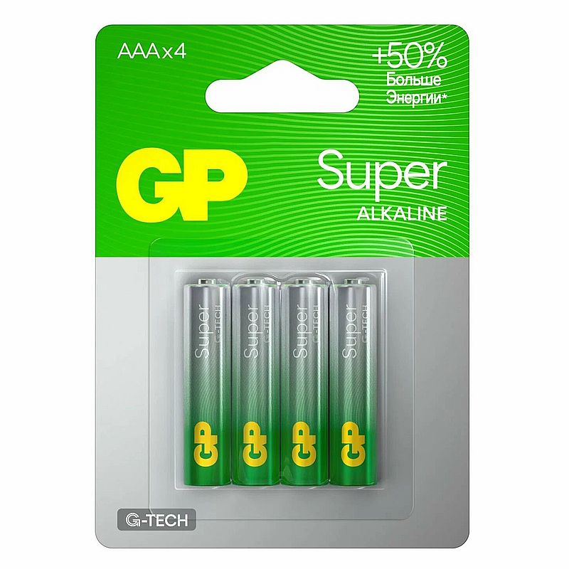 Батарейки AAA GP Super Alkaline с технологией G-TECH обеспечивают до 50%* больше мощности, позволяя вам наслаждаться использованием ваших устройств без перерывов. Технология G-TECH гарантирует длительное время службы ваших устройств. Благодаря использованию графита высокой чистоты и высококачественного порошка цинка S, батарейки обладают высокой мощностью и стабильным напряжением на протяжении продолжительного времени. Запатентованная система предотвращения протечек обеспечивает безопасность использования и защиту ваших устройств. Эти щелочные батарейки выделяются соотношением цены и качества и идеально подходят для повседневных устройств, таких как часы, пульты дистанционного управления и другие. Срок хранения батареек 10 лет. В упаковке 4 батарейки. Цена указана за упаковку.