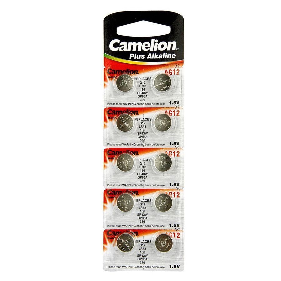 Щелочные батарейки Camelion AG12 (LR1142, LR43, V12GA, 186, 186A, GP86A, 381, 386, RW84, 1167A)