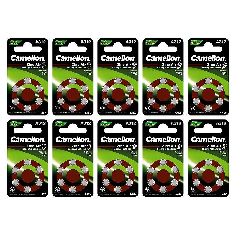 Элемент питания для слуховых аппаратов ZA312 Camelion. Цена указана за 60 батареек (10 блистеров по 6 батареек).