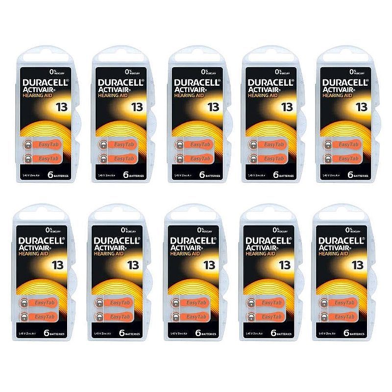 Duracell ActivAir 13 - долговечные батарейки без ртути для слуховых аппаратов. Изготовлены с применением специальной технологии, защищающей батарейки от протекания. Цена указана за 60 батареек (10 блистеров по 6 батареек).