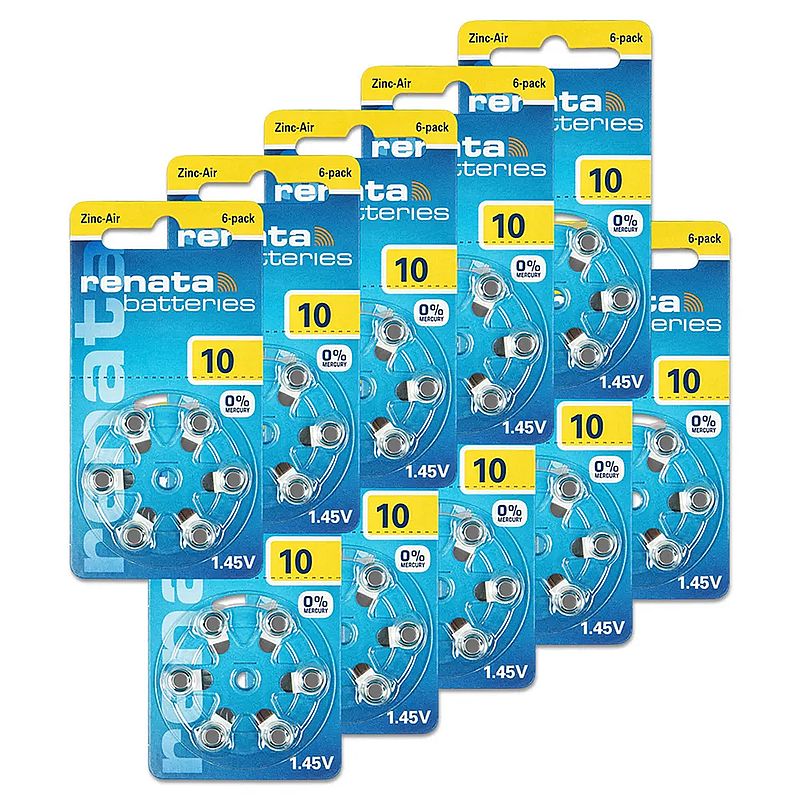 Батарейки для слуховых аппаратов ZA10 Renata. Цена указана за 60 батареек (10 блистеров по 6 батареек).