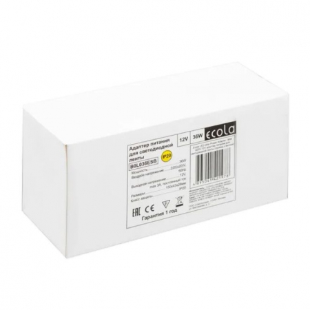 Блок питания (вилка с проводом) для LED ленты 36 Вт, 220V-12V, штекер 5.5x2.5 мм, Ecola (B0L036ESB)