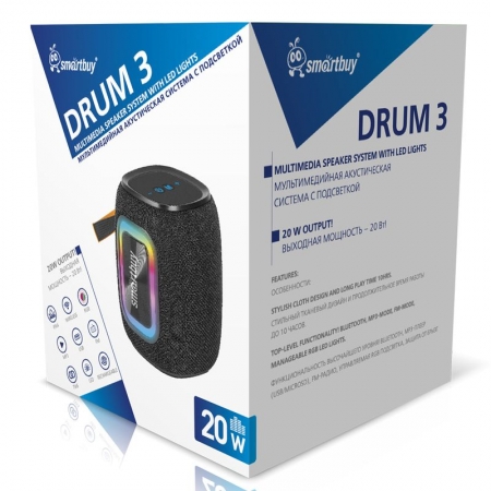 Bluetooth колонка Smartbuy DRUM 3, 20 Вт, TWS/MP3/FM/RGB, черная (SBS-5710)