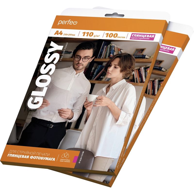 Односторонняя глянцевая водостойкая фотобумага Perfeo для струйной печати, A4, 110 г/м2, 100 листов.