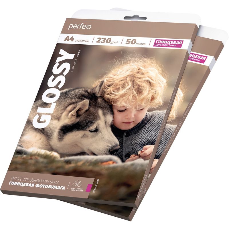 Односторонняя глянцевая водостойкая фотобумага Perfeo для струйной печати, A4, 230 г/м2, 50 листов.