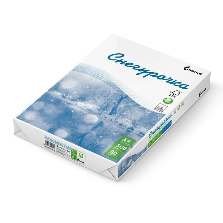 Универсальная белая бумага класса C Mondi "Снегурочка" для лазерной, струйной и матричной печати, А4, 80 г/м2, 500 листов.
