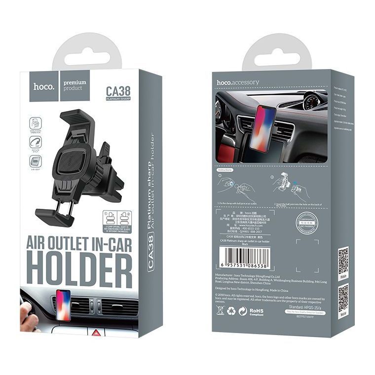 Держатель автомобильный на вентил. решетку, до 6, черный, Hoco CA38"