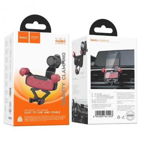 Держатель автомобильный на вентил. решетку, зажимной, чёрный/красный, Hoco H66
