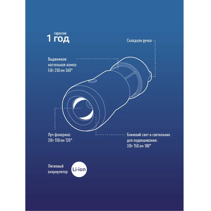 Космос KOCAc6017LED - складной фонарь-траснформер 3 в 1. В режиме кемпингового фонаря регулируется яркость, постепенно выдвигая корпус. Светит вперёд, используя режим фонарика, а мягкий свет кольцевого светильника пригодится при подвешивании над столом или как фонарик ближнего света. Питается от встроенного аккумулятора Li-ion ёмкостью 1200 мАч. Время автономной работы до 4 ч. Заряжается от любого USB-адаптера питания.