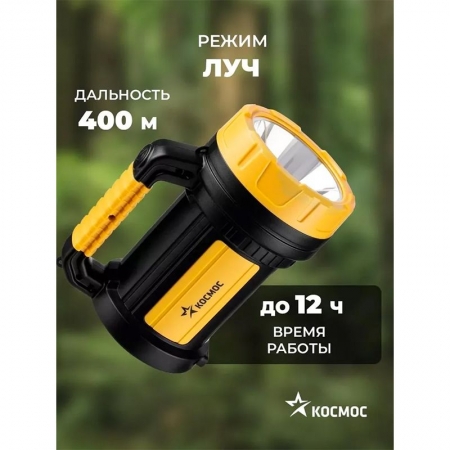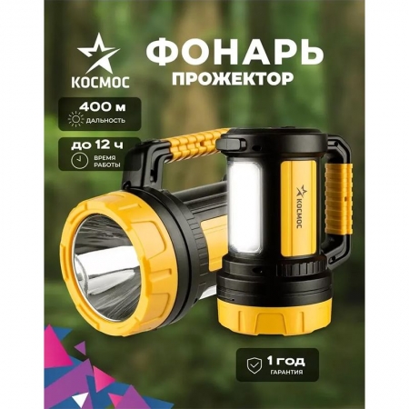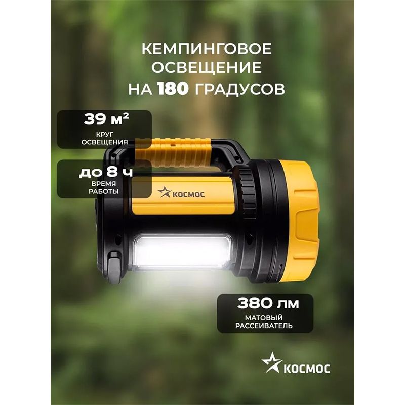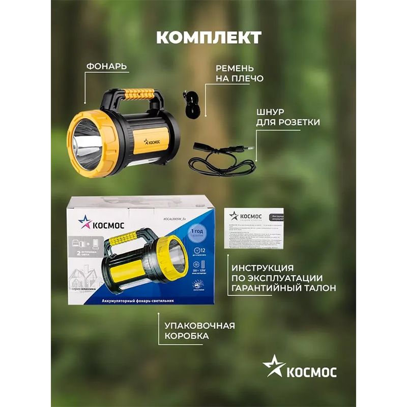 Фонарь-прожектор Космос Ac2005W_Ex, 5 Вт + бок панель 10 Вт, 3 режима, аккумулятор, зу 220/12в