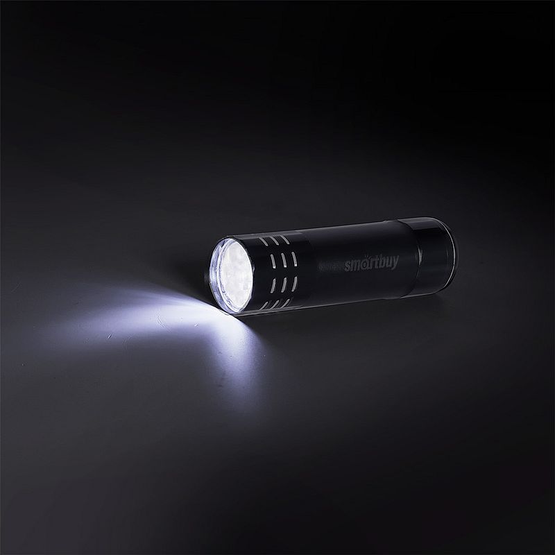 Портативный фонарь SmartBuy SBF-103-B станет незаменимым помощником в повседневной жизни. Устройство оснащено 9 светодиодами общей мощностью 0.5 Вт, которые обеспечивают освещение на расстояние до 5 метров. Корпус фонаря выполнен из алюминия и имеет компактные размеры (83 x 25 мм). Источником питания служат 3 батарейки типа ААА. Технические характеристики