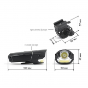 Фонарь велосипедный Эра VA-901, 5 Вт COB, подсветка колеса, аккумулятор, металл, черный
