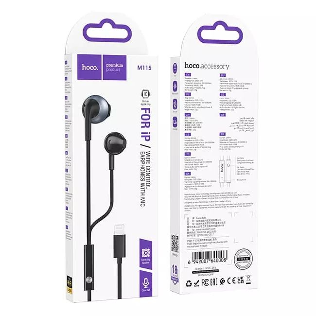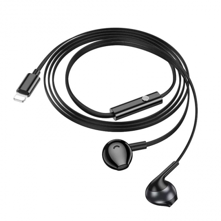 Производитель: Hoco Наименование: Портативная проводная гарнитура Динамики: 14 мм Совместимость с ОС: iOS Управление: Функциональная кнопка (прием звонков/управление воспроизведением) Длина кабеля: 1.2 м Разъем: Lightning Материал корпуса: Пластик Цвет: Чёрный Вес: 14 г