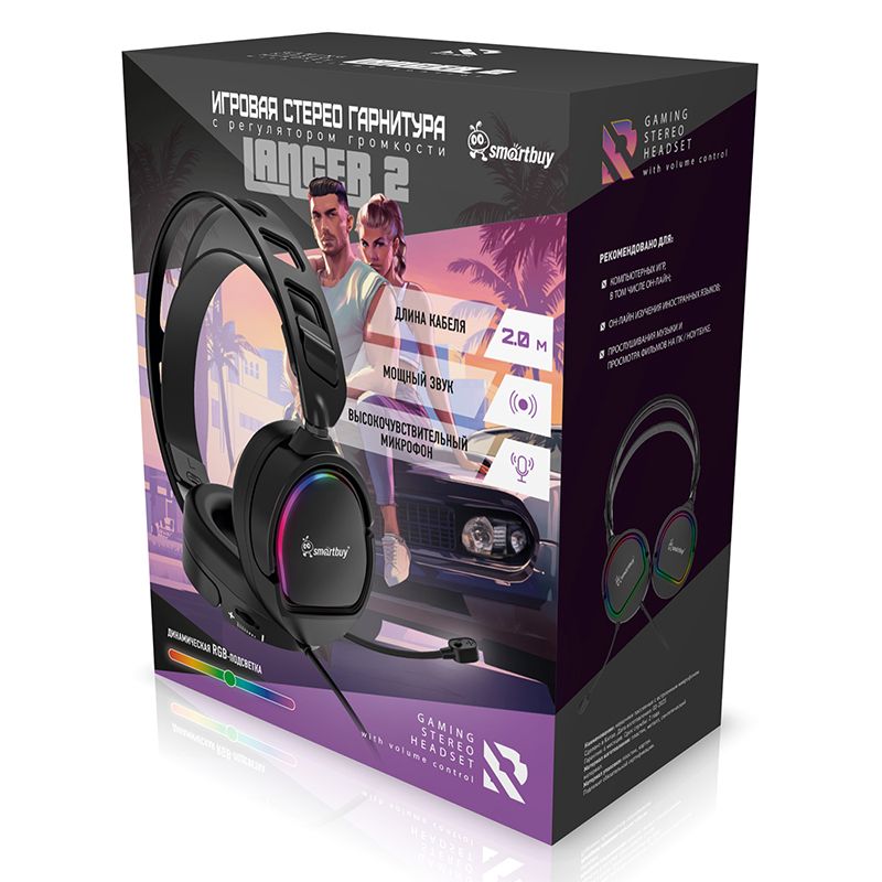 SmartBuy LANCER 2 - полноразмерная игровая гарнитура с RGB-подсветкой. Широкое оголовье с регулируемой высотой и комфортные амбушюры идеально подходят для длительных игровых баталий. Мощные 50 мм широкополосные динамики передают атмосферу приключений без искажений. Высокочувствительный микрофон на гибкой ножке обеспечивает качественную передачу голоса. Кабель длиной 2 м поможет беспрепятственно расположиться в любом удобном месте. Технические характеристики