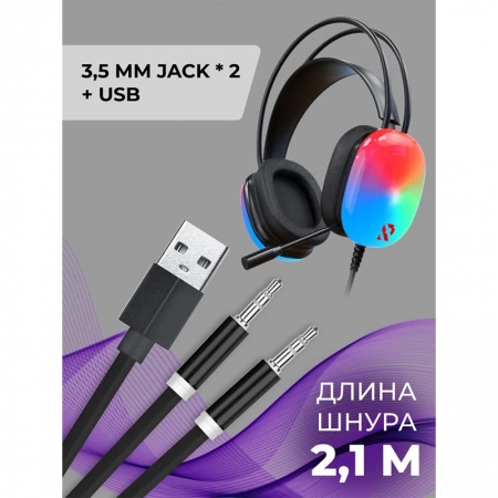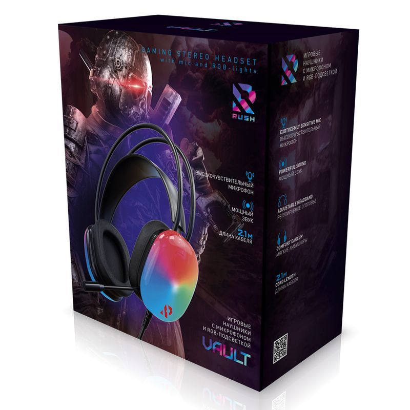 SmartBuy VAULT - полноразмерная игровая гарнитура с адаптивным оголовьем, отличными 50мм игровыми динамиками высокого разрешения и RGB-подсветкой. Амбушюры из искусственной кожи гарантируют отсутствие усталости даже после нескольких часов беспрерывного использования. Высокочувствительный микрофон на гибкой ножке обеспечивает качественную передачу голоса. Кабель длиной 2.1 м поможет беспрепятственно расположиться в любом удобном месте. Технические характеристики