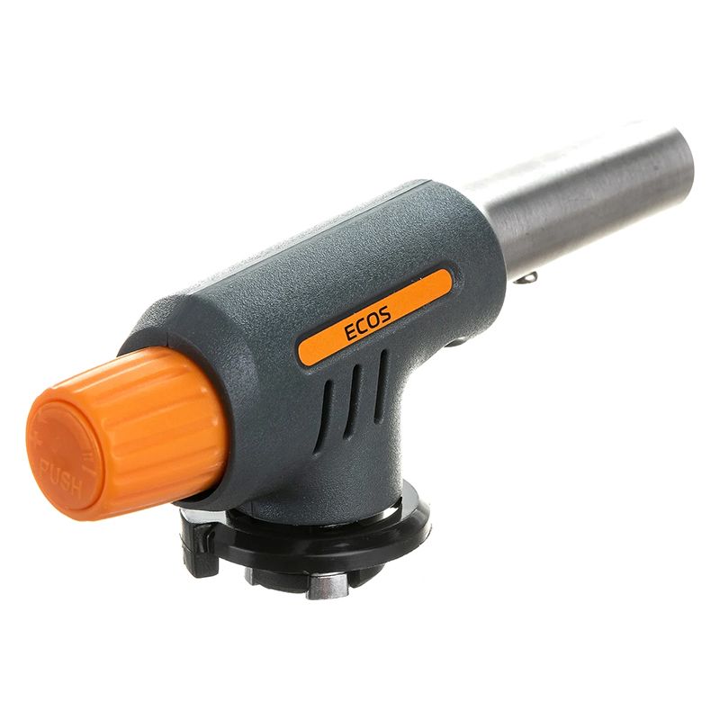 Портативная газовая горелка с пьезоподжигом Ecos GTI-100 - это незаменимый помощник в ремонте, на даче, в мастерской или в походе. Модель сочетает в себе функциональность паяльной лампы и удобство портативного устройства, подходящего для использования в любых условиях. Рекомендуется для разжигания костров/каминов/углей, приготовления пищи, проведения термоусадочных работ, оплавления водоизоляционного материала, сварки швов, прогрева поверхностей, размораживания труб и замков, пайки и лужения металла. Можно использовать под любым углом. Работает от стандартных 220 г цанговых баллонов-картриджей с пропаном, бутаном или изобутаном. Технические характеристики