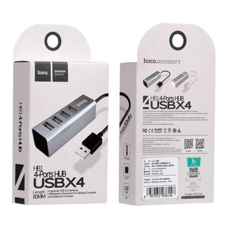 Производитель: Hoco Наименование: USB-разветвитель Кол-во USB-портов: 4 Интерфейс: USB 2.0 Пропускная способность интерфейса: до 480 Мбит/сек Питание: От USB Поддержка Plug-play и Hot-plug: Есть Длина кабеля: 80 см Материал корпуса: ABS-пластик Цвет: Серебристый/белый Размеры: 78 x 25 x 25 мм Вес: 63 г