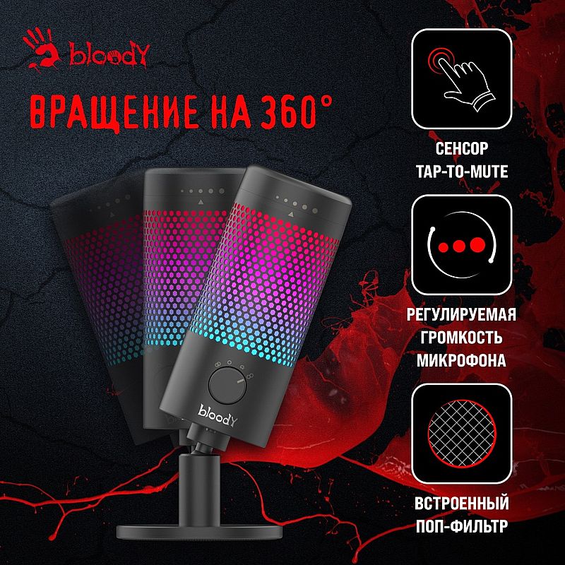 A4TECH Bloody GM50 Pro - игровой микрофон с RGB-подсветкой, регулировкой