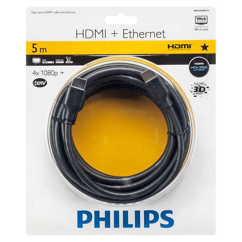 Кабель HDMI 19M-19M V1.4, 5.0 м, HighSpeed с Ethernet, 4K, 3D, Philips (SWV2434W/10)