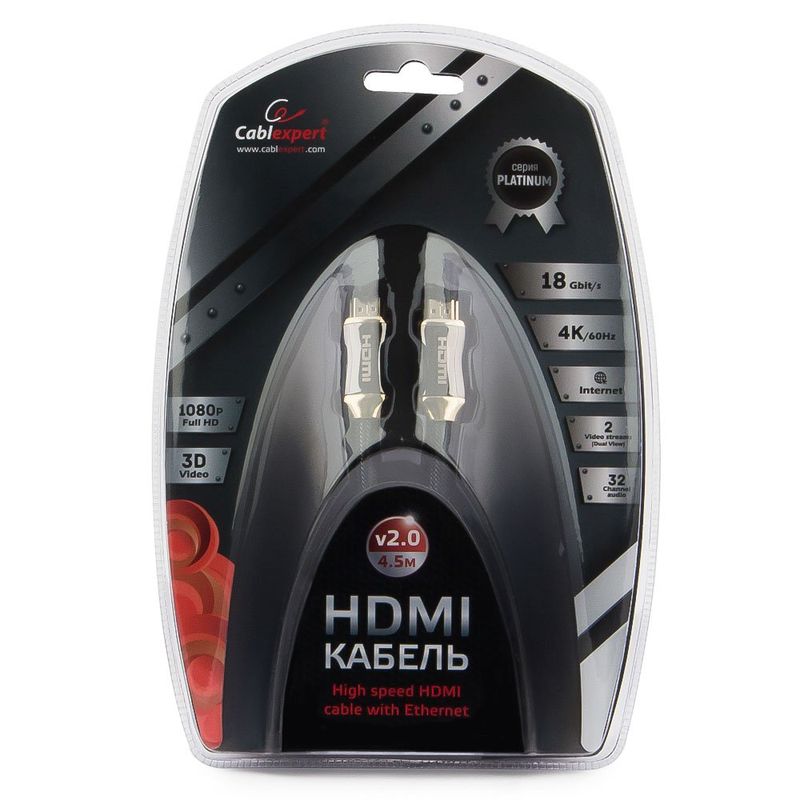 Профессиональный высокоскоростной HDMI кабель Cablexpert серии Platinum предназначен для подключения ПК, игровой консоли, DVD/Blu-ray плеера и других устройств к телевизору, монитору, проектору. Поддержка интерфейса HDMI v.2.0 обеспечивает передачу данных на скорости до 18 Гбит/сек, что позволяет получить разрешение до 4K при 60 Гц. Также кабель поддерживает технологию HDMI Ethernet Channel (HEC), 3D изображение и реверсивный звуковой канал (HARC). Металлические разъемы и армированная оплетка защищают кабель от повреждений и увеличивают срок службы. Позолоченные контакты обеспечивают надежное соединение и передачу сигнала без помех. Особенности
