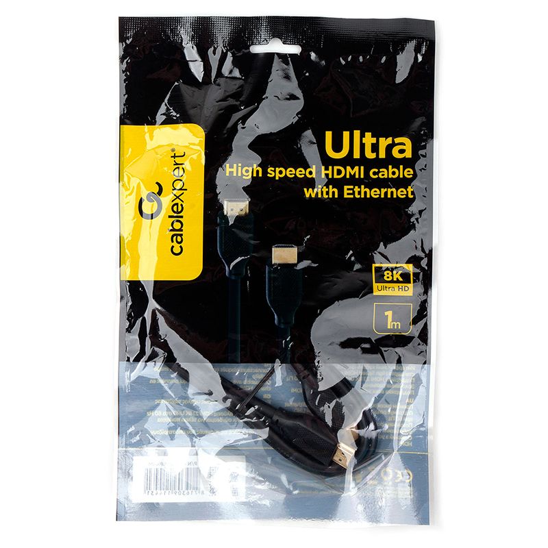 Высокоскоростной HDMI кабель Cablexpert серии Ultra предназначен для подключения ПК, игровой консоли, DVD/Blu-ray плеера и других устройств к телевизору, монитору, проектору. Поддерживает интерфейс HDMI v.2.1 со скоростью передачи данных до 48 Гбит/сек, что позволяет получить разрешение до 8K при 60 Гц. Также кабель поддерживает технологию HDMI Ethernet Channel 100 Мбит/сек (HEC) и реверсивный звуковой канал (HARC). Двойное экранирование и позолоченные контакты обеспечивают качественную передачу сигнала без помех. Технические характеристики
