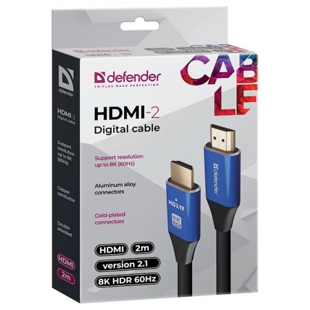 Кабель HDMI 19M-19M V2.1 8K, 2 м, черный/синий, Defender (87331)