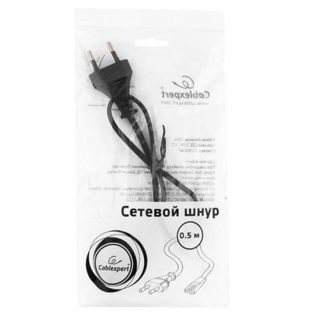 Главная / Кабели, разъемы, адаптеры / Кабель / 220В кабель питания / Кабель питания для бытовой техники, CEE 7/16 - C7, 2.5А, 0.5 м, Cablexpert (PC-184/2-0.5M)