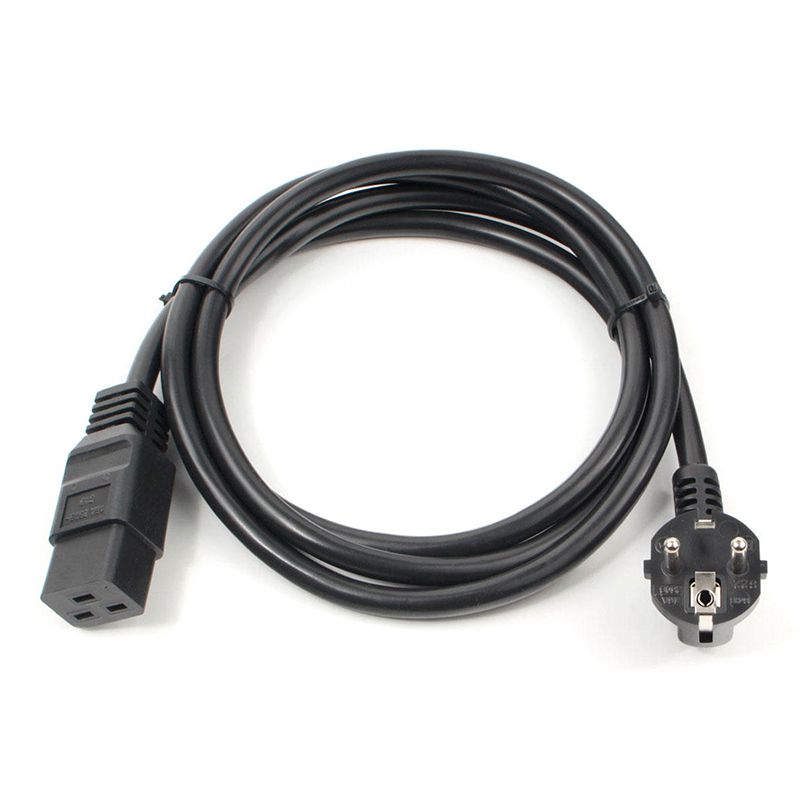 Кабель питания Power Cube с разъёмом C19 предназначен для подключения электроприборов (серверных станций, медицинского оборудования, ИБП и др.) к сети 220В. Провод имеет сечение 1.5 мм2. Суммарная мощность нагрузки 3500 Вт.