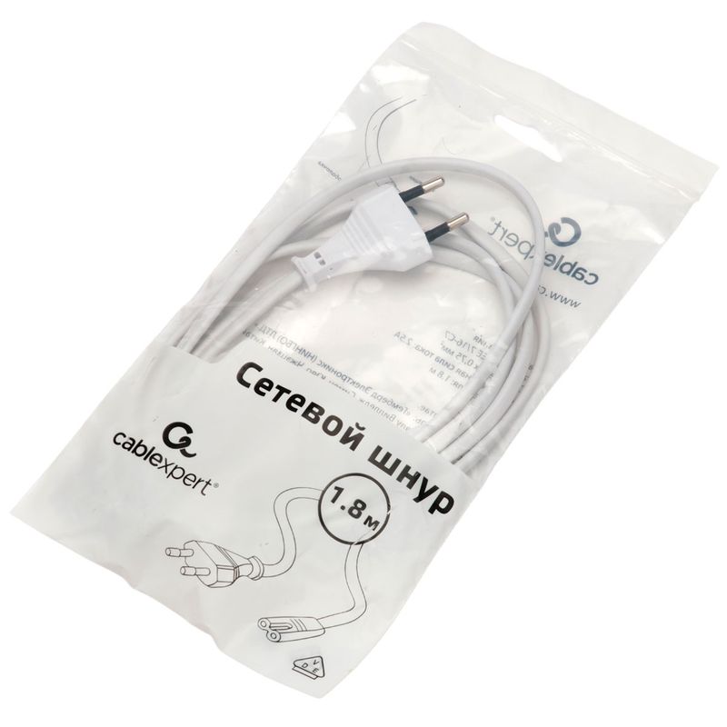 Главная / Кабели, разъемы, адаптеры / Кабель / 220В кабель питания / Кабель питания для бытовой техники, CEE 7/16 - C7, VDE, 1.8 м, белый Cablexpert (PC-184W-VDE-1.8M)