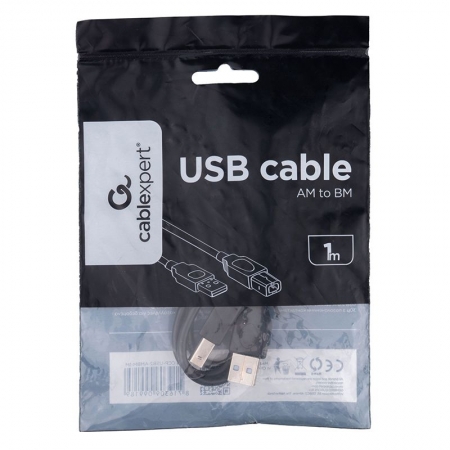 Кабель USB 2.0 Am - Bm - 1.0 м, двойной экран, медь, черный, Cablexpert (CCP-USB2-AMBM-1M)