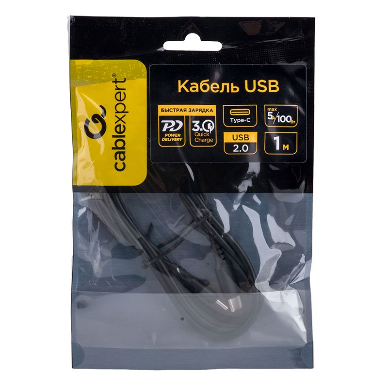 Кабель USB 2.0 Type C M-M - 1 м, 100Вт, 5A, PD/QC3.0, черный, Cablexpert (CC-USB2-CMCM-100-1M)