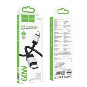 Кабель USB 2.0 Type C M-M - 1 м, 60Вт, 3A, PD/QC3.0, черный, нейлон, Hoco X110
