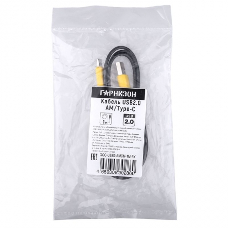 Кабель USB 3.1 Type C(m) - USB 2.0 Am - 1.8, черно-желтый, Гарнизон (GCC-USB2-AMCM-1M-BY)