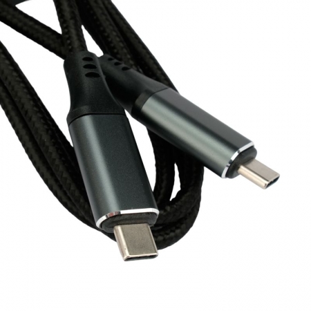 Кабель предназначен для соединения устройств, оснащенных разъемами Type C. Подходит для зарядки/передачи данных смартфонов, планшетов и другой портативной техники. Поддерживает интерфейс USB 4.0, обеспечивающий скорость передачи данных до 40 Гбит/сек. Совместим с протоколами быстрой зарядки QC4.0/PD3.1, максимальная мощность 240 Вт. Кабель изготовлен из высококачественных материалов, имеет металлические разъемы и тканевую оплетку.