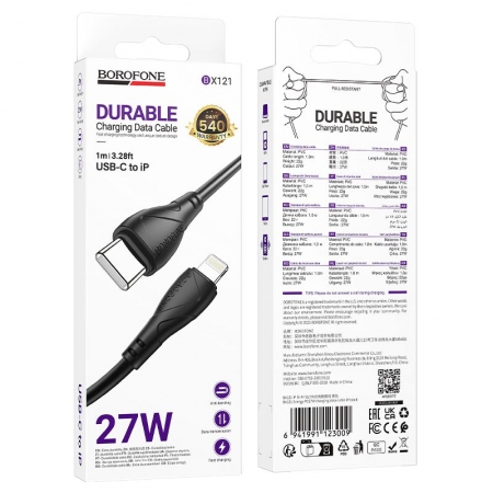 Кабель USB Type C - 8 pin Lightning, 1 м, PD 27Вт, черный, Borofone BX121