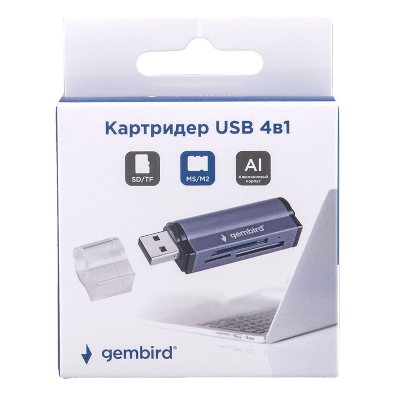 Карт-ридер внешний USB Gembird FD2-MSD-5, SD/MicroSD/MS/M2, алюминий
