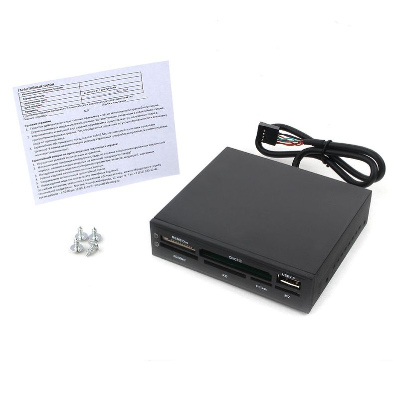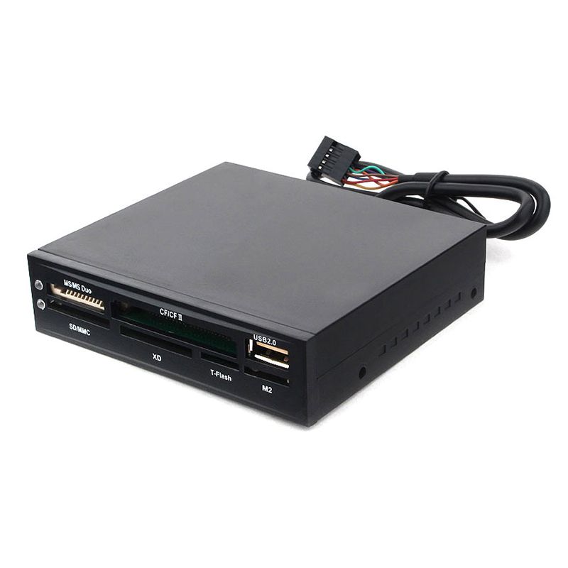 Внутренний картридер Gembird FDI2-ALLIN1-02-B предназначен для установки в 3,5 отсек системного блока. Устройство оснащено 6 слотами поддерживающими большинство типов карт памяти, индикаторами питания и передачи данных, а также портом USB 2.0. Подключается к внутреннему разъему на материнской плате.