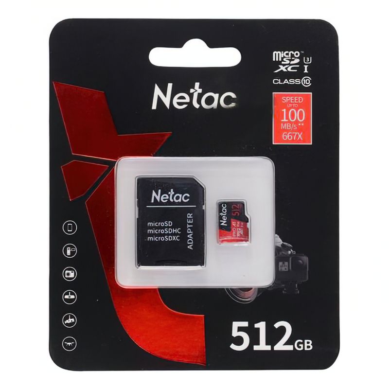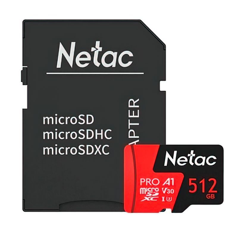 Карта памяти Micro SDXC 512Gb Netac P500 Extreme Pro U1 V30 A1 100 Мб/c + адаптер SD