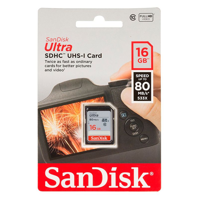 Карта памяти SDHC 16Gb SanDisk Ultra Class 10, UHS-I, 80 Мб/с (SDSDUNS-016G-GN3IN)