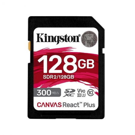 Карта памяти SDXC 128Gb Kingston Canvas React Plus UHS-II U3 V90, 300 Мб/c (SDR2/128GB)