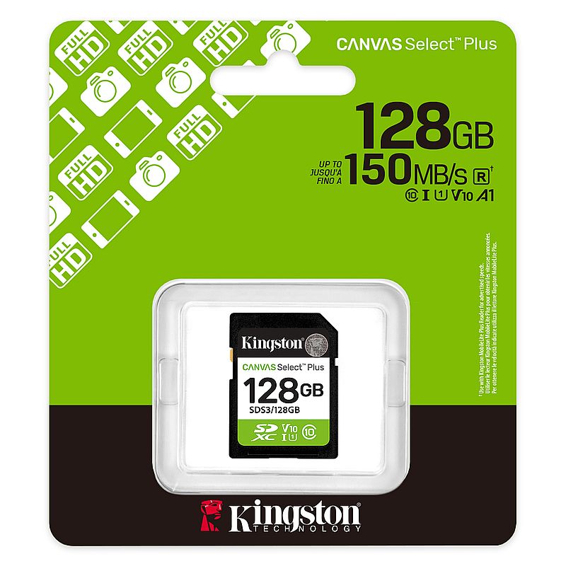 Карта памяти SDXC 128Gb Kingston Canvas Select Plus U1 V10 150 Мб/с (SDS3/128GB)