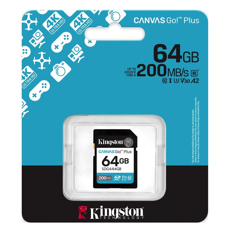 Карта памяти SDXC 64Gb Kingston Canvas Go Plus G4 U3 V30 200/100 Мб/с (SDG4/64GB)