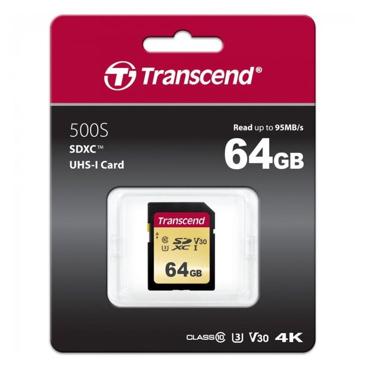 Карта памяти SDXC 64Gb Transcend 500S Class 10 U3 V30 (TS64GSDC500S)
