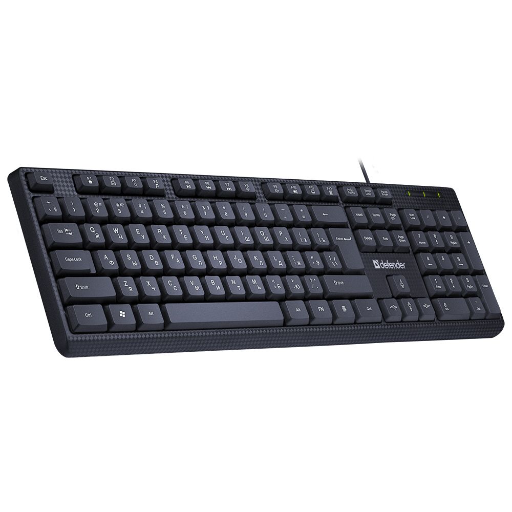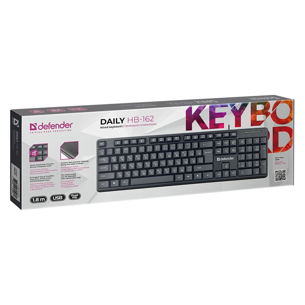 Defender Daily HB-162 - стильная проводная офисная клавиатура с фактурой под карбон и тихим ходом клавиш. Клавиатура имеет классическую раскладку, увеличенные клавиши-модификаторы, а также горячие клавиши для управления мультимедийными программами. Угол наклона клавиатуры регулируется с помощью ножек. Легкое подключение к ПК, для работы не требуются драйверы.