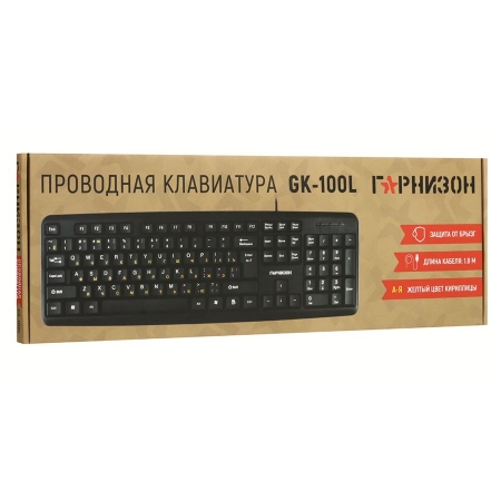 Клавиатура Гарнизон GK-100L, кабель 1.8 м, черная, USB