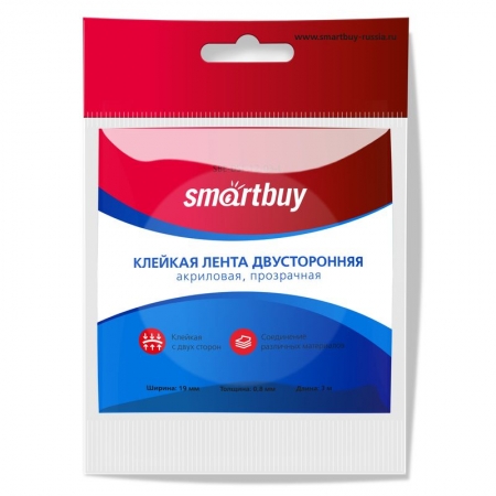 Клейкая лента двусторонняя, акриловая, 0.8х12мм, 3 м, прозрачная, Smartbuy (SBE-DST-12-03-t)
