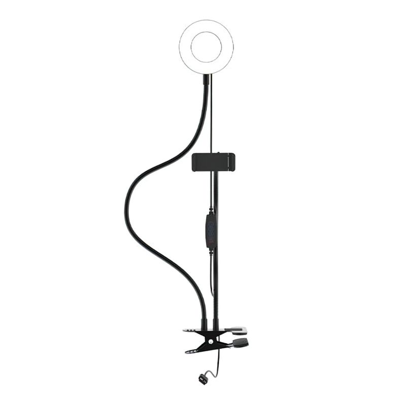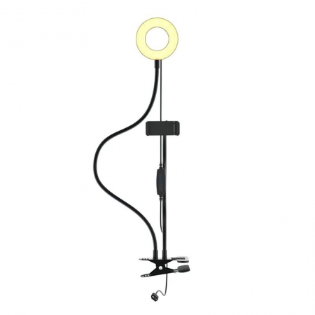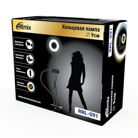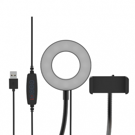 Кольцевая лампа 9см с настольным креплением и держателем для телефона, Ritmix RRL-091