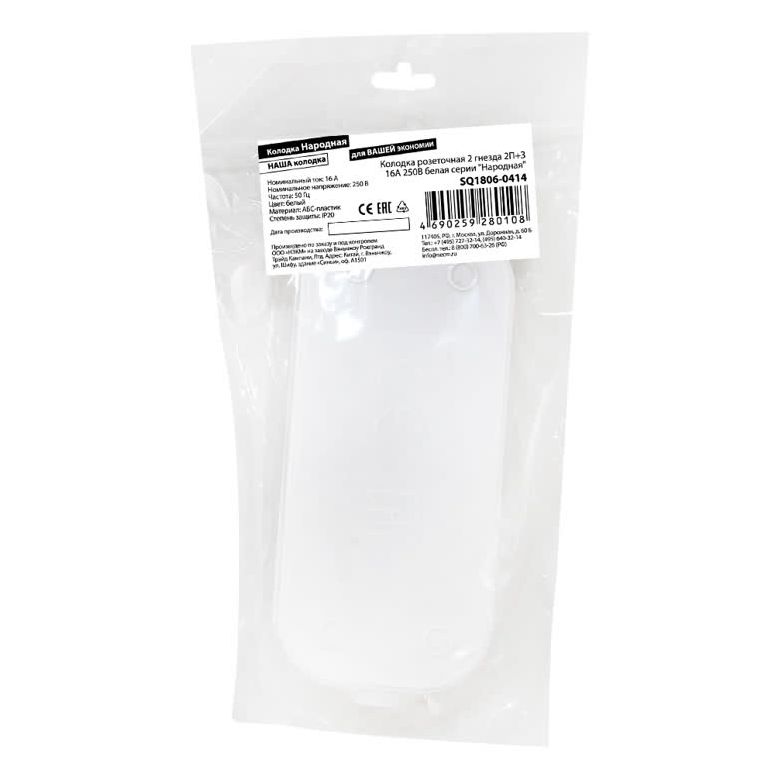 Колодка розеточная предназначена для использования в качестве блока розеток или для производства удлинителей. Она имеет два гнезда с заземлением, номинальный ток 16А и напряжение 250В. Максимальная подключаемся нагрузка - 3500 Вт. Корпус колодки выполнен в белом цвете и имеет степень защиты IP20. Благодаря наличию на задней стенке крепежных отверстий, изделие можно закрепить на вертикальной поверхности.