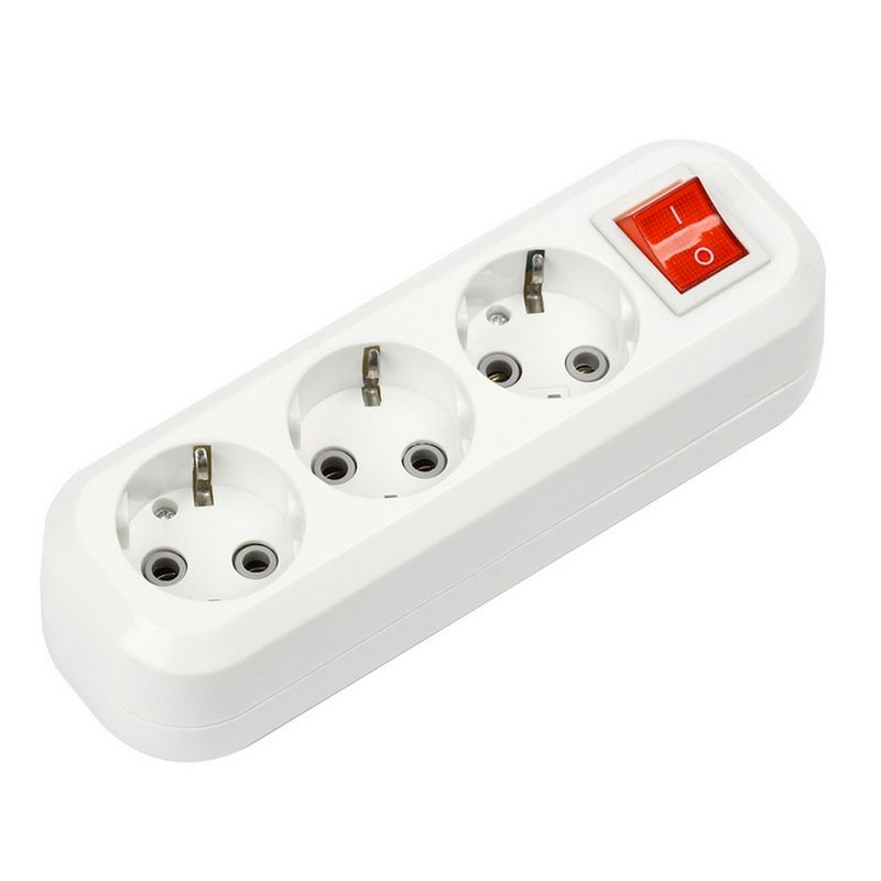 Колодка с 3 розетками с заземлением и встроенным выключателем.