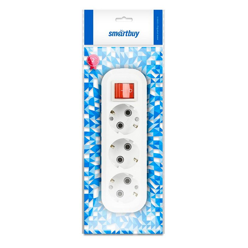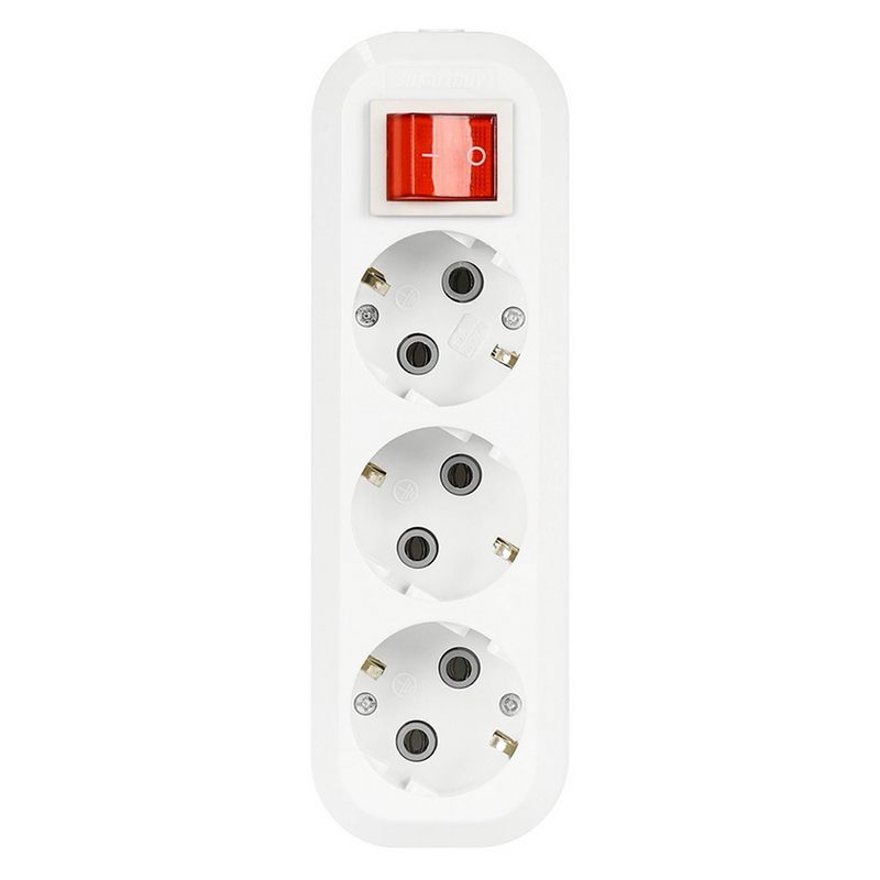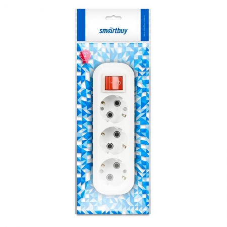 Колодка розеточная 3 гнезда с выключателем и заземлением, 16А 220В, белая, Smartbuy (SBE-16-3-00-ZS)